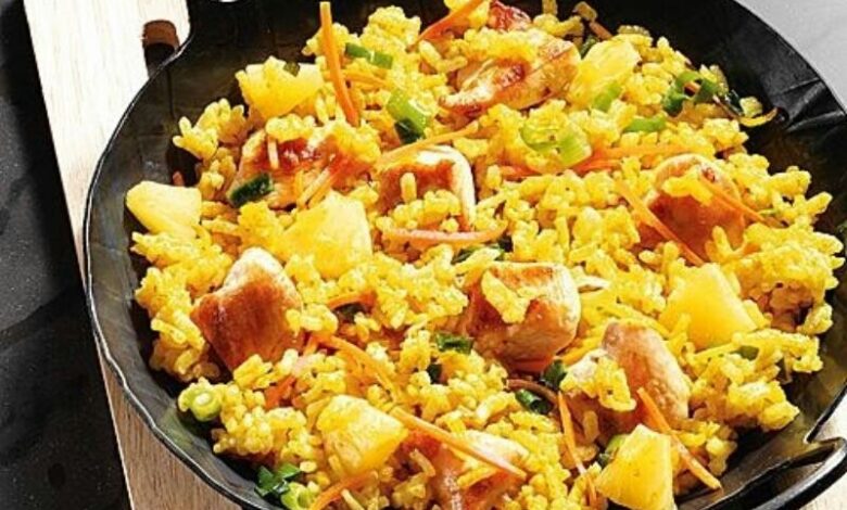- Добавьте рис и жарьте несколько минут, пока зерна не станут прозрачными.